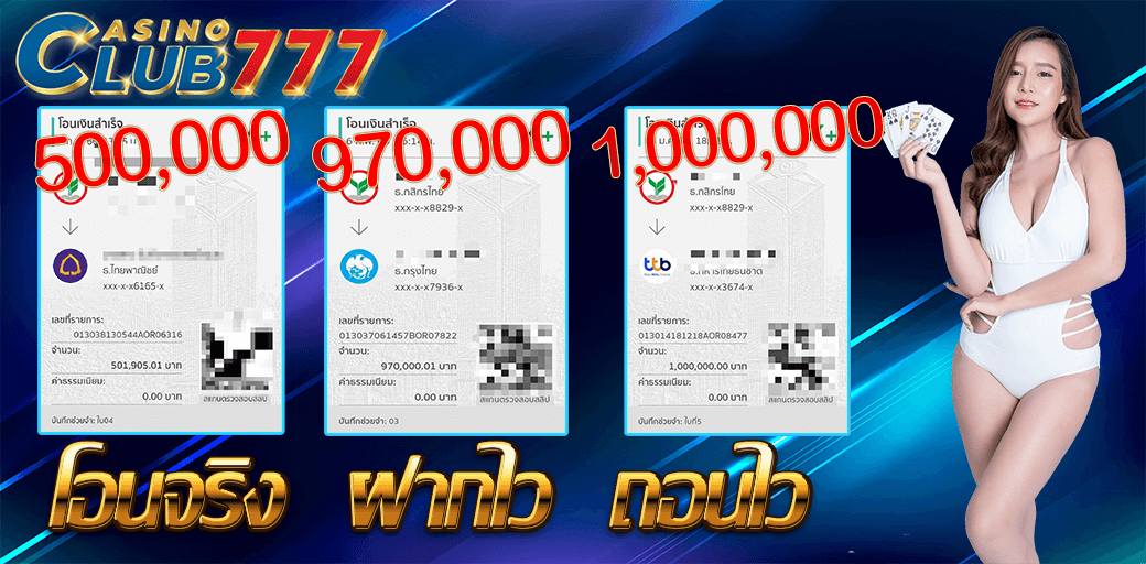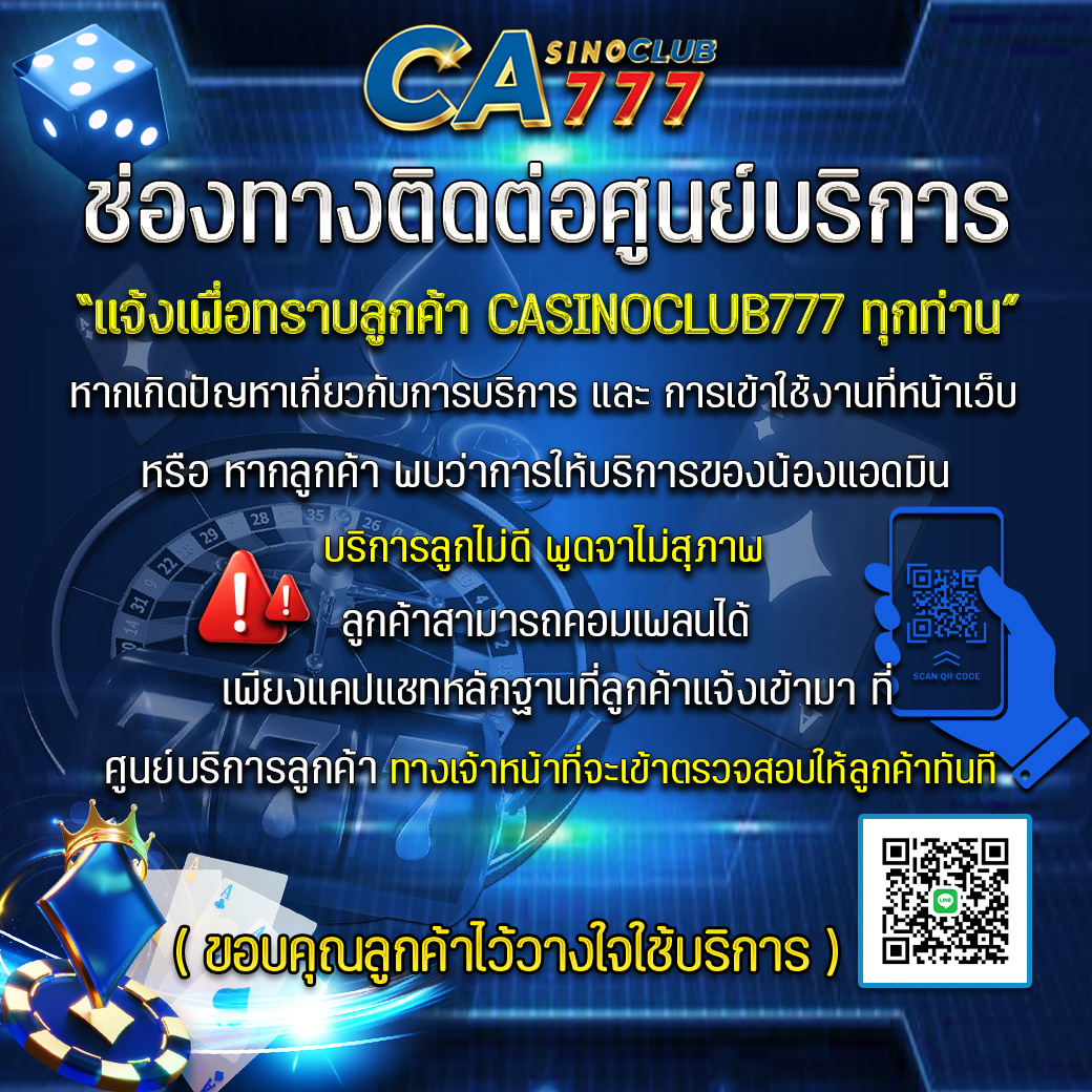 เว็บไซต์ บาคาร่า คาสิโนออนไลน์ casinoclub777.com เราเป็นผู้ให้บริการ บาคาร่า ในรูปแบบ บาคาร่าออนไลน์ แบบเรียลไทม์ ส่งตรงจากบ่อน Casino ผู้เล่นสามารถดูไพ่ที่แจก ก่อนเริ่มเดิมพันได้ในเวลา 20-30 วินาที Baccarat Online ถือว่าเป็นเกมส์ไพ่ ที่มีเสน่ห์ มีนักพนันเล่นกันเป็นจำนวนมาก โดยเราเป็น เว็บบาคาร่า ที่ได้รับความนิยมอย่างแพร่หลาย มาอย่างยาวนาน ผู้เล่นยังสามารถรับเงินรางวัลจาก เกมส์บาคาร่า ไปได้ ภายในเวลาไม่กี่วินาทีก่อนที่เกมส์การแข่งขันจะจบลงอีกด้วย และผู้เล่นจะได้รับประสบการณ์ การเล่น คาสิโน ที่ปลอดภัย โดยมีระบบตรวจสอบที่ได้รับการยอมรับในระดับสากล สมัครเล่น บาคาร่ามือถือ กับ casinoclub7 รับโบนัสแรกเข้าทันที และลุ้นรับโบนัสอีกมากมายกับโปรโมชั่นประจำเดือน สนใจเล่นบาคาร่ากับเราติดต่อเราได้ตลอด 24 ช.ม. ร่วมสนุกกับเว็บออนไลน์อันดับ 1 ของเอเซีย เราคืออาณาจักรเว็บร่วมสนุกกับเกมออนไลน์ และกีฬาต่างๆ อันดับหนึ่งของเอเชีย มีเกมหลากหลายชนิด อาทิ ฟุตบอล บาสเก็ตบอล เทนนิส สนุ๊กเกอร์ อี-สปอร์ต และอื่นๆอีกมากมาย